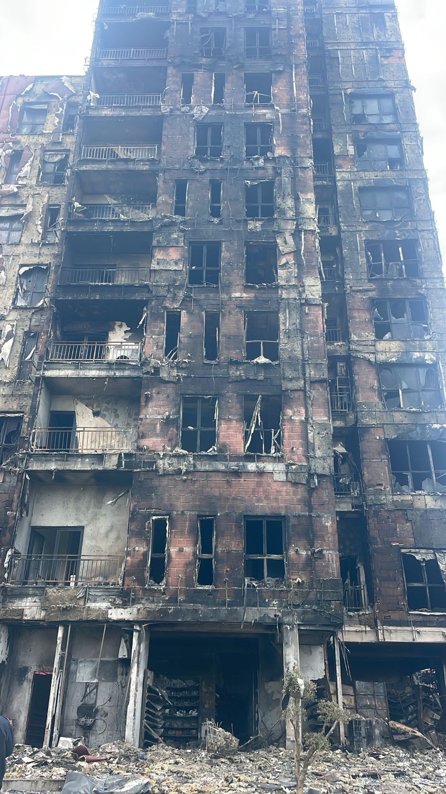 Mëngjesin e sotëm, pas shuarjes së flakëve, pamjet nga vendngjarja tregojnë një situatë të rëndë, ku fasada e ndërtesës është djegur pothuajse tërësisht.