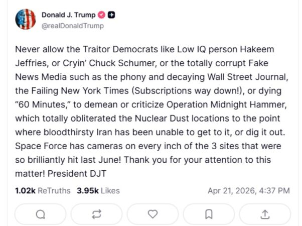 Presidenti amerikan gjithashtu pretendoi se sulmet “shkatërruan plotësisht vendet ku ndodhet uraniumi, deri në atë pikë sa Irani i etur për gjak nuk ka qenë në gjendje t’i qaset ose t’i gërmojë ato”.
