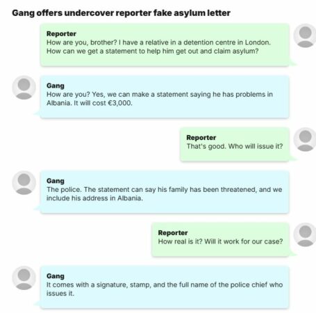 Në këtë artikull, raportohet se azilkërkuesit shqiptarë po paguajnë oficerë policie të korruptuar për të siguruar letra zyrtare që mbështesin aplikimet e tyre, në të cilat mashtrohet duke thënë se janë kërcënuar dhe u rrezikohet jeta në vendin tonë.