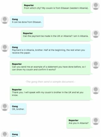 I pyetur nga gazetari se nga kush do të lëshohej deklarata, përdoruesi anonim tha se ajo do të lëshohej nga ‘policia’ dhe do të përfshinte një ‘firmë, vulë dhe emrin e plotë të’ shefit të policisë. Anëtari i bandës kërkoi gjysmën e parave paraprakisht dhe pjesën tjetër pasi kishte marrë deklaratën.