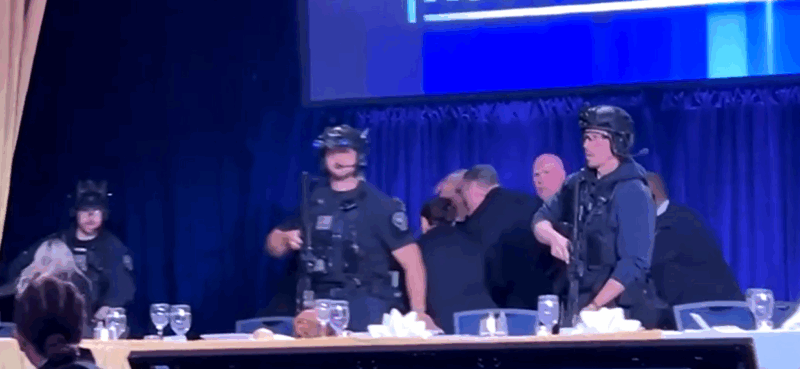 Shërbimi Sekret dhe autoritetet e tjera mbushën sallën e banketit në Washington Hilton, ndërsa qindra të ftuar që po hanin u fshehën poshtë tavolinave.