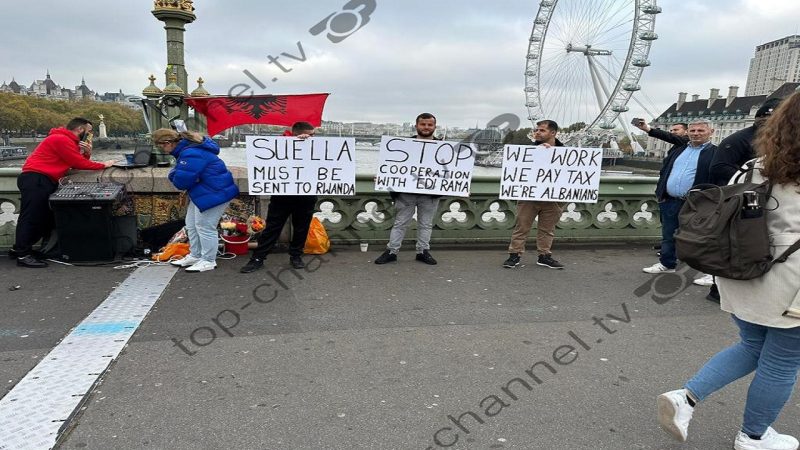 Londër/ Shqiptarët protestojnë kundër retorikës diskriminuese të Suela Braverman (Fotot)