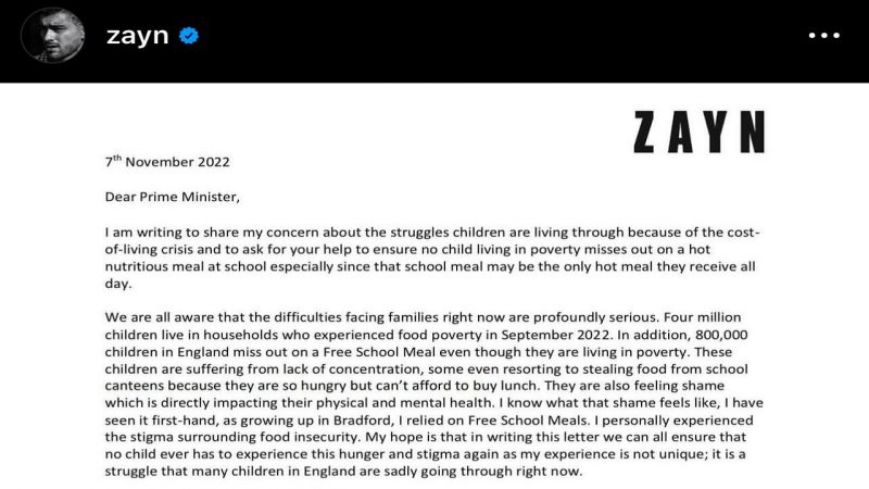 Ish-ylli i One Direction, Zayn Malik i shkruan kryeministrit për të siguruar ushqim falas fëmijëve në shkollë 08/11/2022 11:55