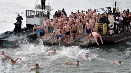 Hidhen në lumin e akullt për kryqin/ Dhjetëra besimtarë serbë u zhytën në lumë kur temperatura ishte 2 gradë 19/01/2022 01:40