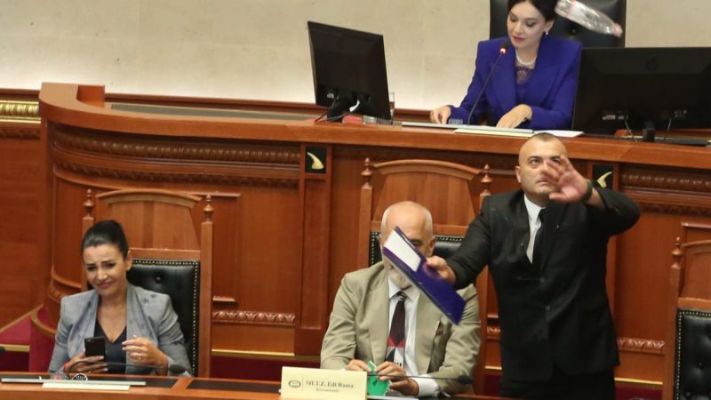 FOTOT/ Garda mbron Ramën nga shishet, Paloka në telefon me këmbët mbi tavolinë! Çfarë nuk u pa nga përplasja në Kuvend