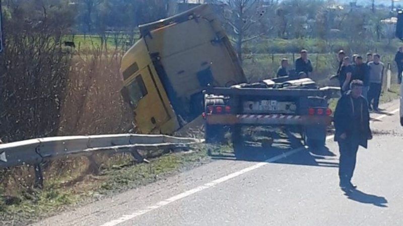 Aksident në aksin Milot-Rreshën/ Kamioni me targa të Kosovës del nga rruga, plagoset shoferi 13/03/2024 14:47
