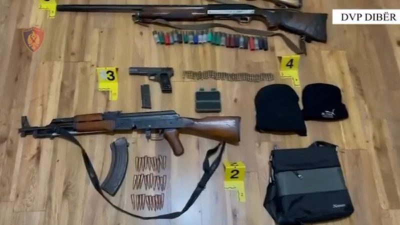 Fshehu në banesë një kallashnikov, çifte, pistoletë dhe municion luftarak, arrestohet 21-vjeçari në Mat
