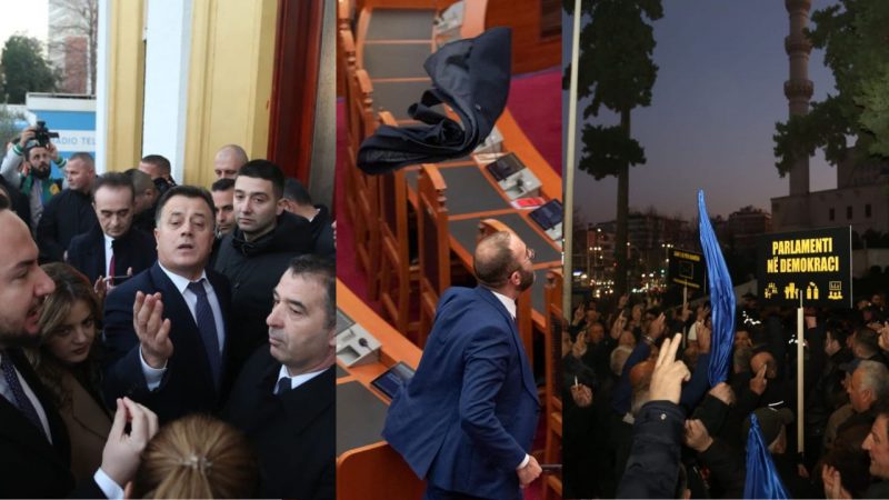 Përleshje e bllokim në Parlament/ Garda ndaloi deputetët e PD, Bardhi shkoi për herë të parë poshtë ballkonit të Berishës