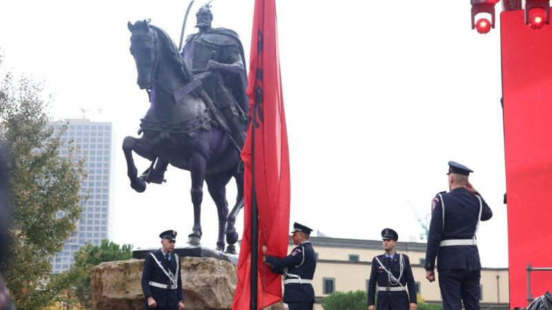 Fotot/ Festohet 111-vjetori i Pavarësisë në Tiranë, ngrihet flamuri në Sheshin “Skënderbej”
