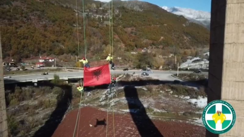 Pamje spektakolare! Flamuri shqiptar ngrihet në urën e Bushtricës, në nder të Pavarësisë