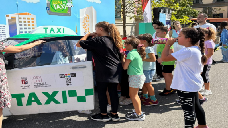 Luaj me Taksi/ Fëmijët mësojnë mbi mjetet elektrike, vizitojnë taksinë elektrike dhe stacionin e improvizuar në Tiranë