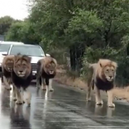 ‘Trafik i rënduar’ në Afrikën e Jugut/ Video spektakolare e 4 luanëve që bllokojnë rrugën e makinave në rezervat