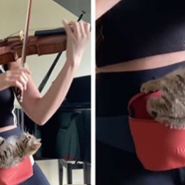 Violinistja gjen mënyrën edhe për t’u praktikuar edhe të mbajë kotelen pranë (Video+foto frymëzuese)