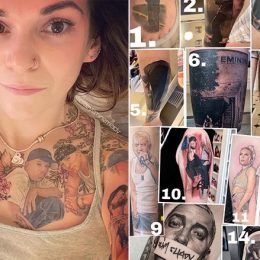 (Foto) Hyn në Librin e Guiness, fansja e Eminem realizon 16 tatuazhe me portretet e tij