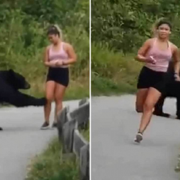 Moment i tmerrit kur ariu i zi shfaqet papritur e godet me kthetra vrapuesen në park (video)