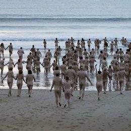 Një ritual i çuditshëm; 600 persona nudo në Detin e Veriut