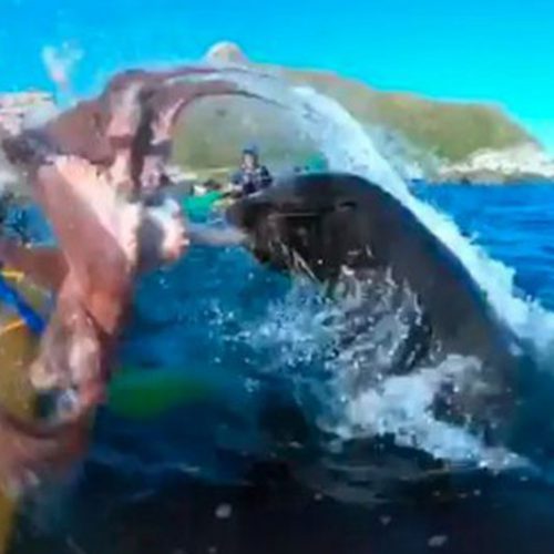 Voziste me kajak, foka i hedh në fytyrë oktapodin gjigant (Video)