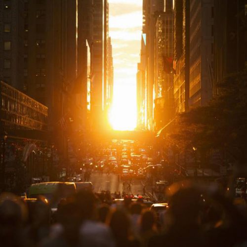Perëndimi dramatik, pamje mbresëlënëse në Manhatan