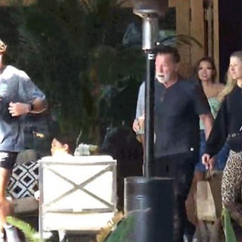 Fotot/ Arnold Schwarzenegger fotografohet duke u puthur me një vajzë misterioze
