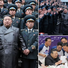 Kim Jong Un me ‘pardesy’ lëkure celebron lëshimin e satelitit, me të bijën dhe shkencëtarët koreanë (fotot)