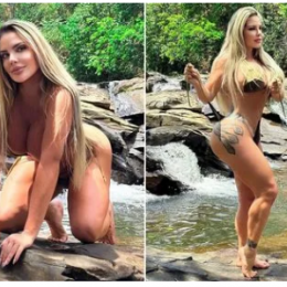 Avokatja ‘më joshëse në botë’ habit fansat në pozat me mini-bikini nga ujëvara e famshme në Brazil (fotot)