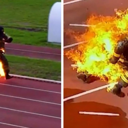 ‘Njeriu pishtar’/ Zjarrfikësi thyen rekordin e vrapimit më të gjatë i veshur nga flakët (fotot)