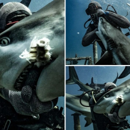 Momentet e tmerrit kur peshkaqeni masiv kafshon dorën e zhytësit të rrethuar nga 20 bisha deti (fotot)