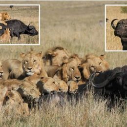 Momentet e pabesueshme kur tufa e luanëve rrëzon bufalon 1000 kg në sulmin mizor (fotot)