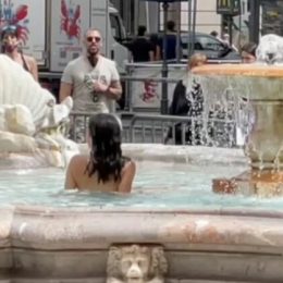 Vajza italiane nuk e duron dot vapën, zhvishet lakuriq dhe lahet në shatërvanin përballë parlamentit (FOTOT)