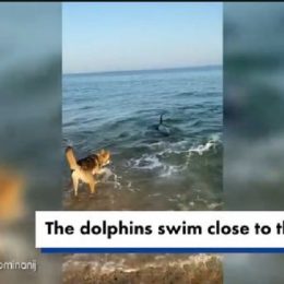 Momente të mrekullueshme, delfini luan me qenin në det (Pamjet që do t’ju lënë pa fjalë)