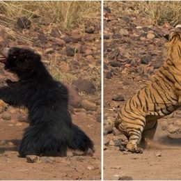 Tigri i Bengalit përleshet me ariun 100kg “më vrasës në botë” (Video e rrallë)