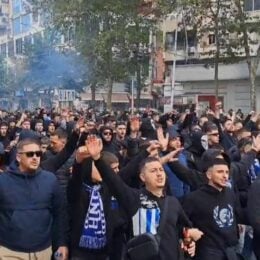 Derbi Tirana-Partizani, tifozët bardheblu marshojnë drejt stadiumit