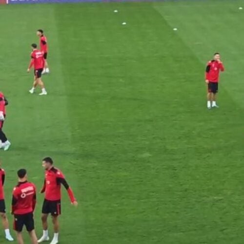 Të rrethuar nga forca të shumta policie, Kombëtarja mbërrin në stadiumin e Leskovcit