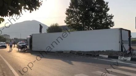 Aksident në Lezhë, mjeti i tonazhit të rëndë humb kontrollin dhe përmbyset në rrugë, shpëton mrekullisht shoferi