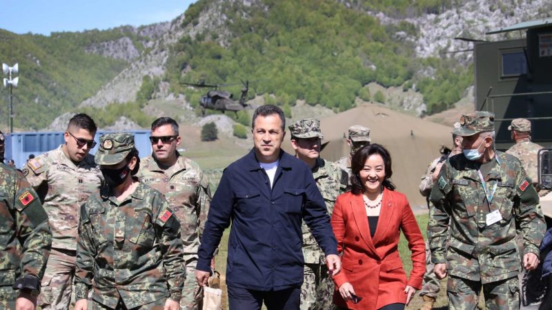 Qitje me mortaja e snajper, Ministri i Mbrojtjes dhe ambasadorja Kim ndjekin stërvitjen e trupave amerikane dhe shqiptare në Bizë