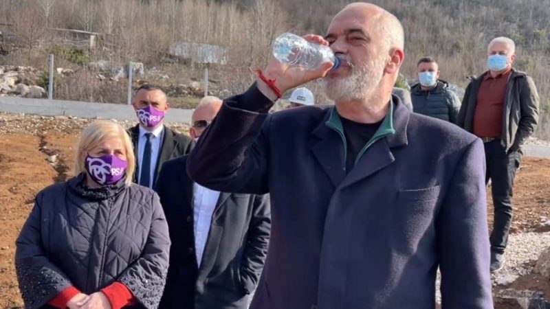 Ujë i pijshëm në Krujë, Rama mbush shishen në rubinet: Gëzuar! Shishen e parë çojani PD-së