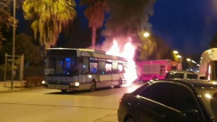 Autobusi i linjës Vlorë-Uji i ftohtë përfshihet nga flakët, pamjet e tymit që përfshiu gjithë zonën