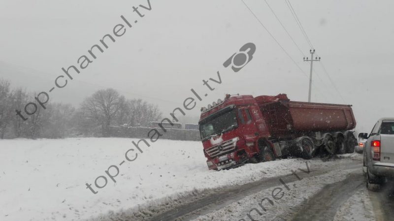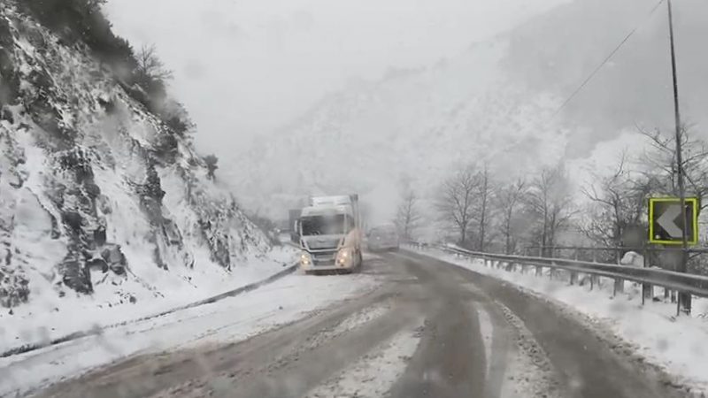 Vështirësi në aksin Elbasan-Prrenjas/ Kamionët bllokohen në rrugë nga dëbora, automjetet ndërrojnë gomat 13/02/2021 16:17