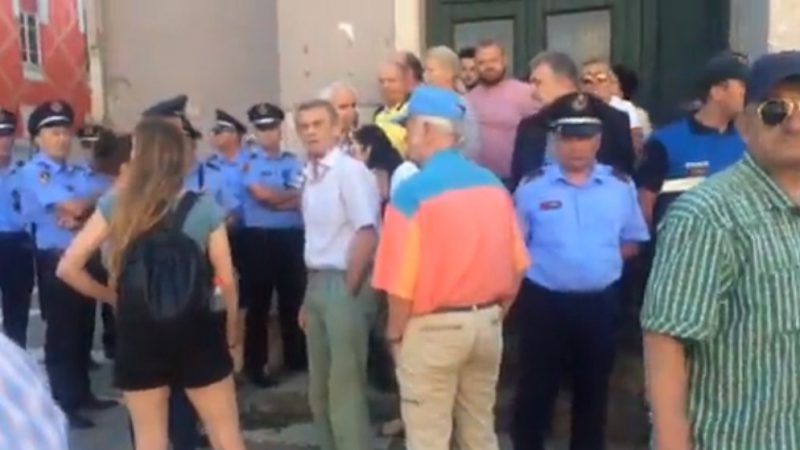 Video/ Tension te Teatri Kombëtar, policia rrethon godinën por kundërshtohet nga protestuesit