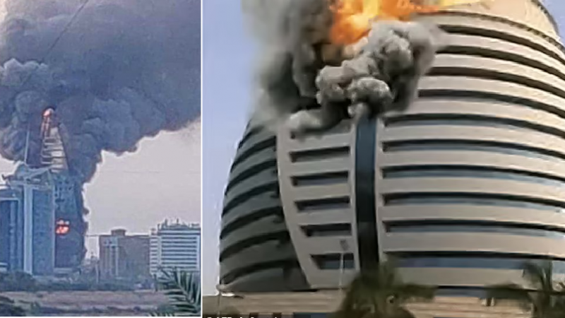 Flakë gjigante përfshijnë ndërtesën më të lartë në kryeqytetin e Sudanit, ku konflikti anti-qeveritar hyn në muajin e gjashtë (fotot)