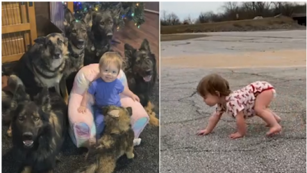 Bebja që rritet me gjashtë pastorë gjermanë, ecën këmba-dorazi për të imituar ‘miqtë’ e saj (fotot)