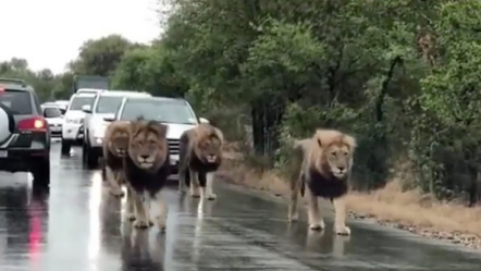 ‘Trafik i rënduar’ në Afrikën e Jugut/ Video spektakolare e 4 luanëve që bllokojnë rrugën e makinave në rezervat
