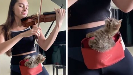 Violinistja gjen mënyrën edhe për t’u praktikuar edhe të mbajë kotelen pranë (Video+foto frymëzuese)