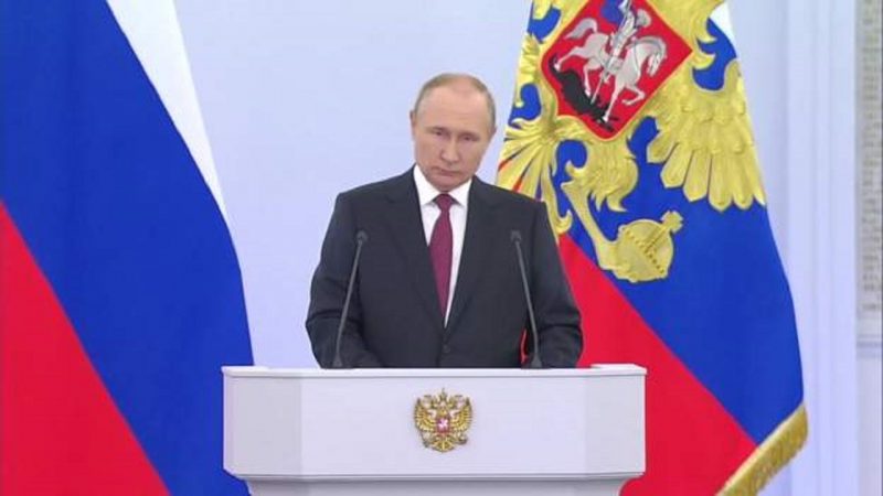 Putin shpall aneksimin e katër rajoneve ukrainase me një ceremoni në Pallatin Presidencial 30/09/2022 14:33