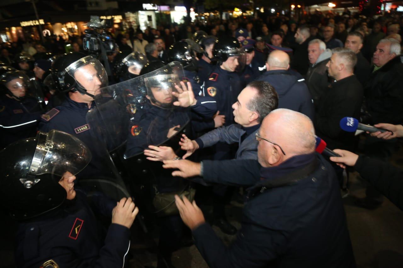 The opposition protest started with tensions from the first minutes, as the police opposed the blocking of the axes in the capital.
