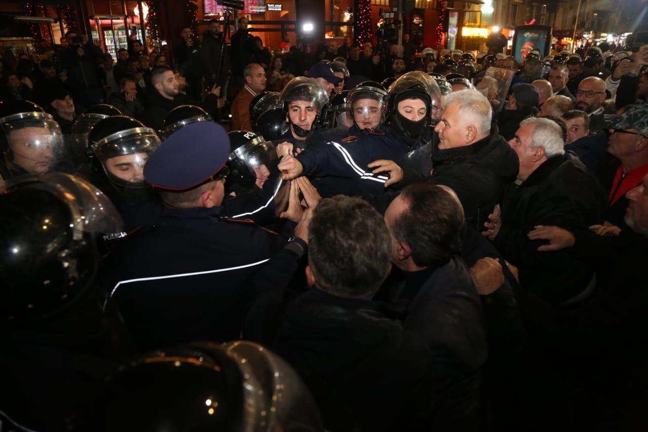 The opposition protest started with tensions from the first minutes, as the police opposed the blocking of the axes in the capital.