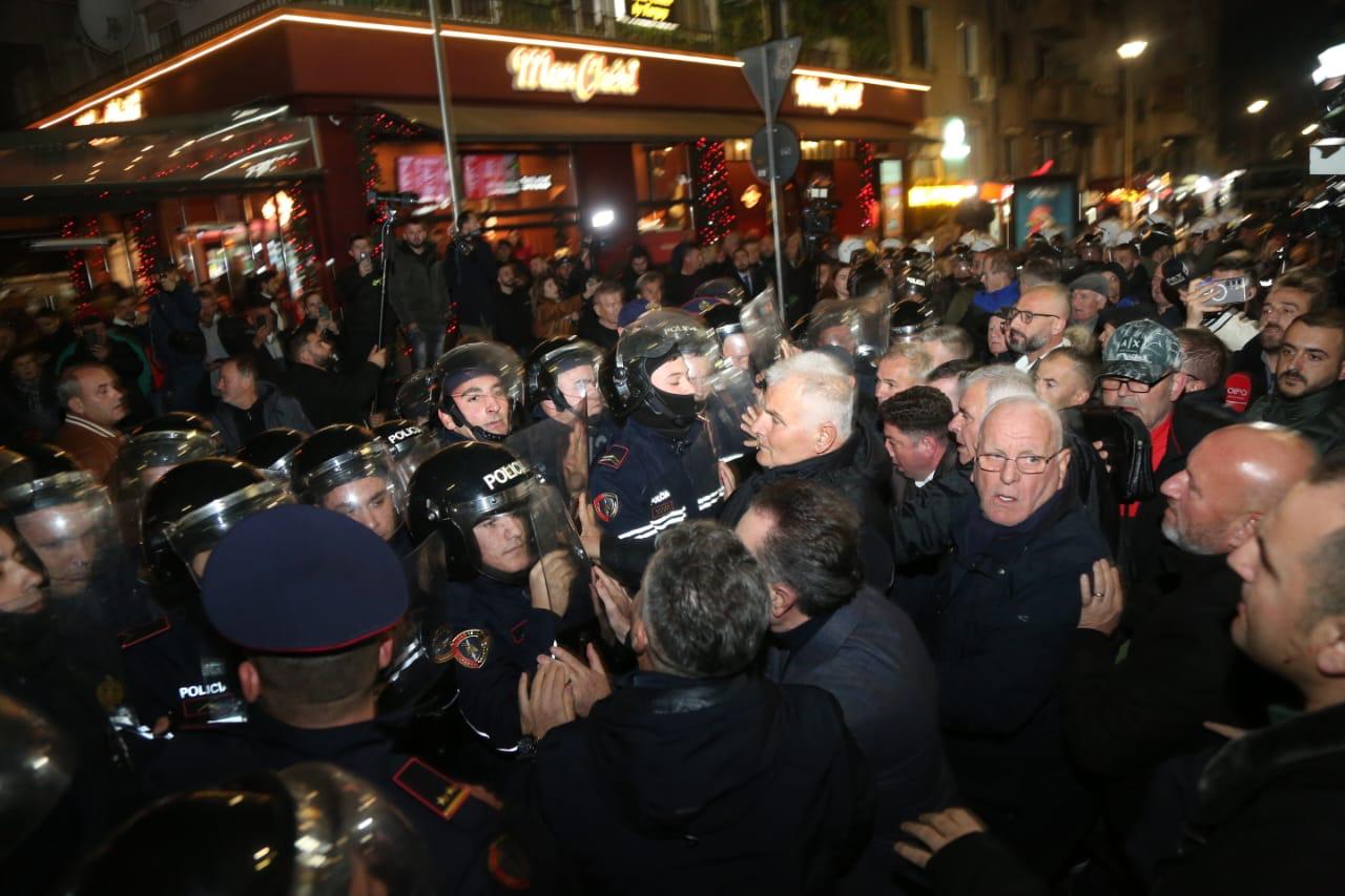 Tear gas and water cannons amid the clashes in the DP opposition protest which ended after three hours in Tirana