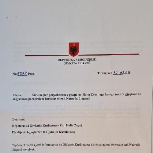 Gjykata e Lartë presion Kushtetueses: Të përjashtohet Holta Zaçaj nga shqyrtimi i kërkesës së Naureda Llagamit