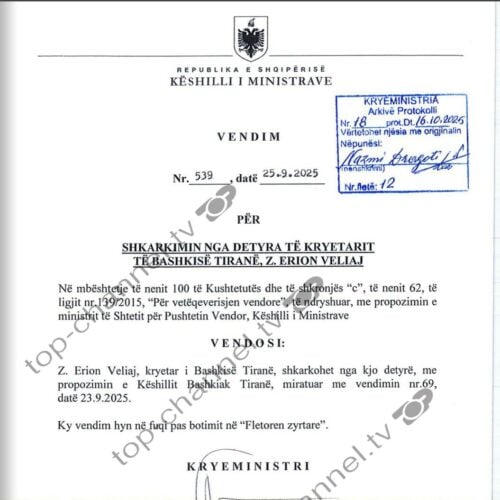 Shkarkimi i Erion Veliajt/ Argumentet e Qeverisë për Kushtetuesen: U propozua nga Këshilli Bashkiak, ne finalizuam procedurën (Dokumenti)