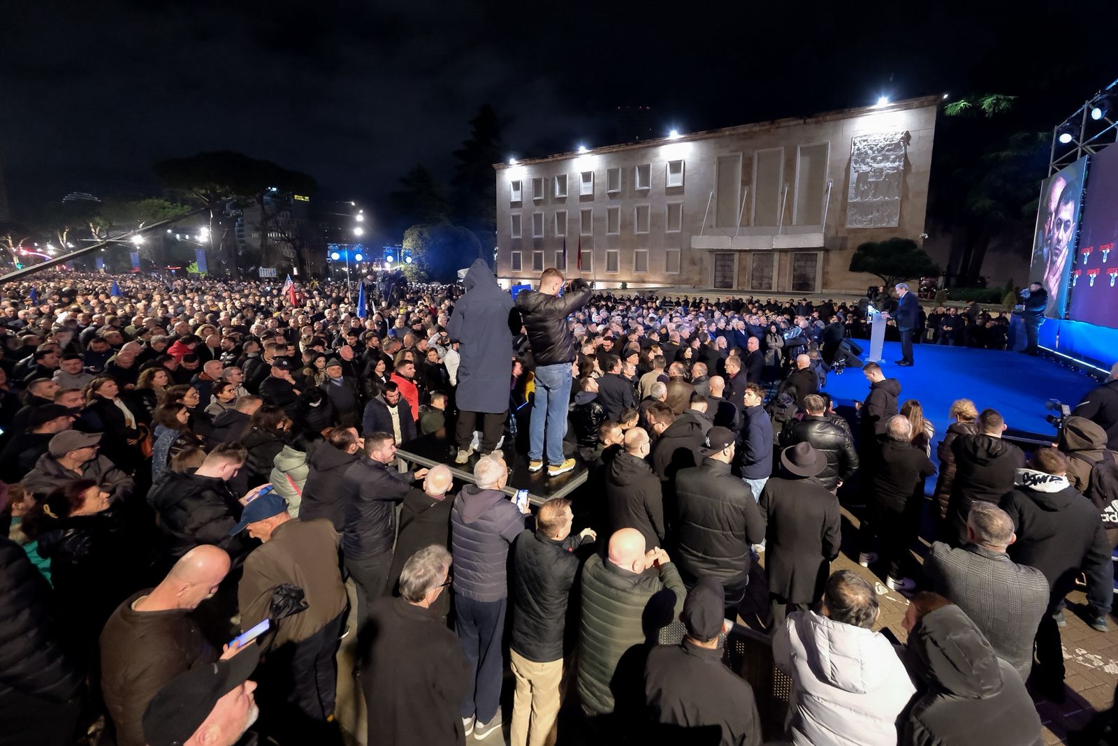 Foto Galeri • Berisha mbyll fjalimin, hidhen fishekzjarrë dhe molotovë drejt Kryeministrisë, policia bën thirrje: Ndaloni